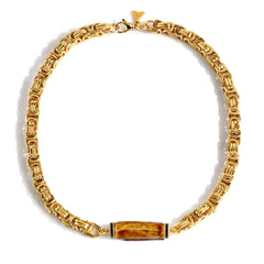 22 K gold plated necklace with hand sculptured porcelain stone in the middle.