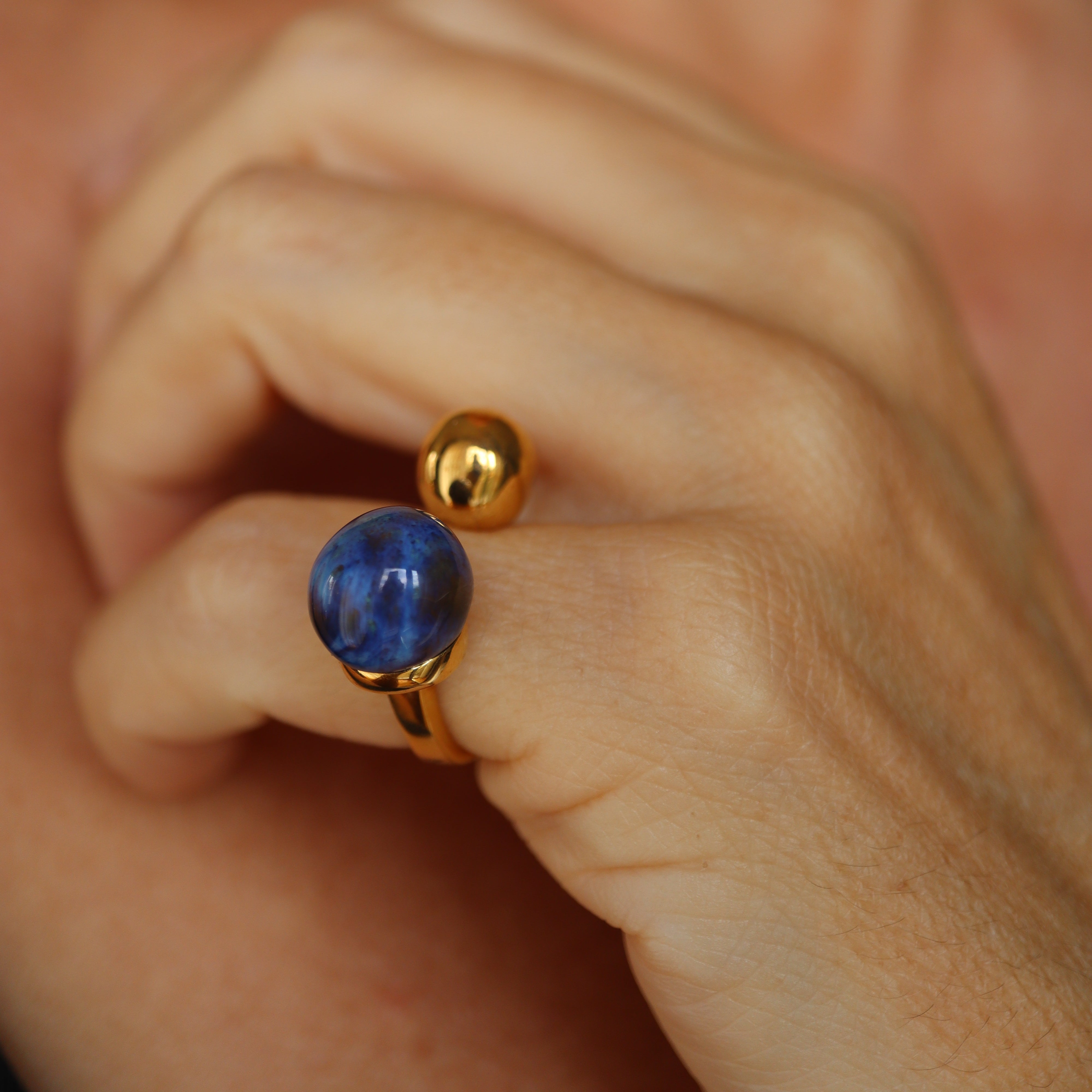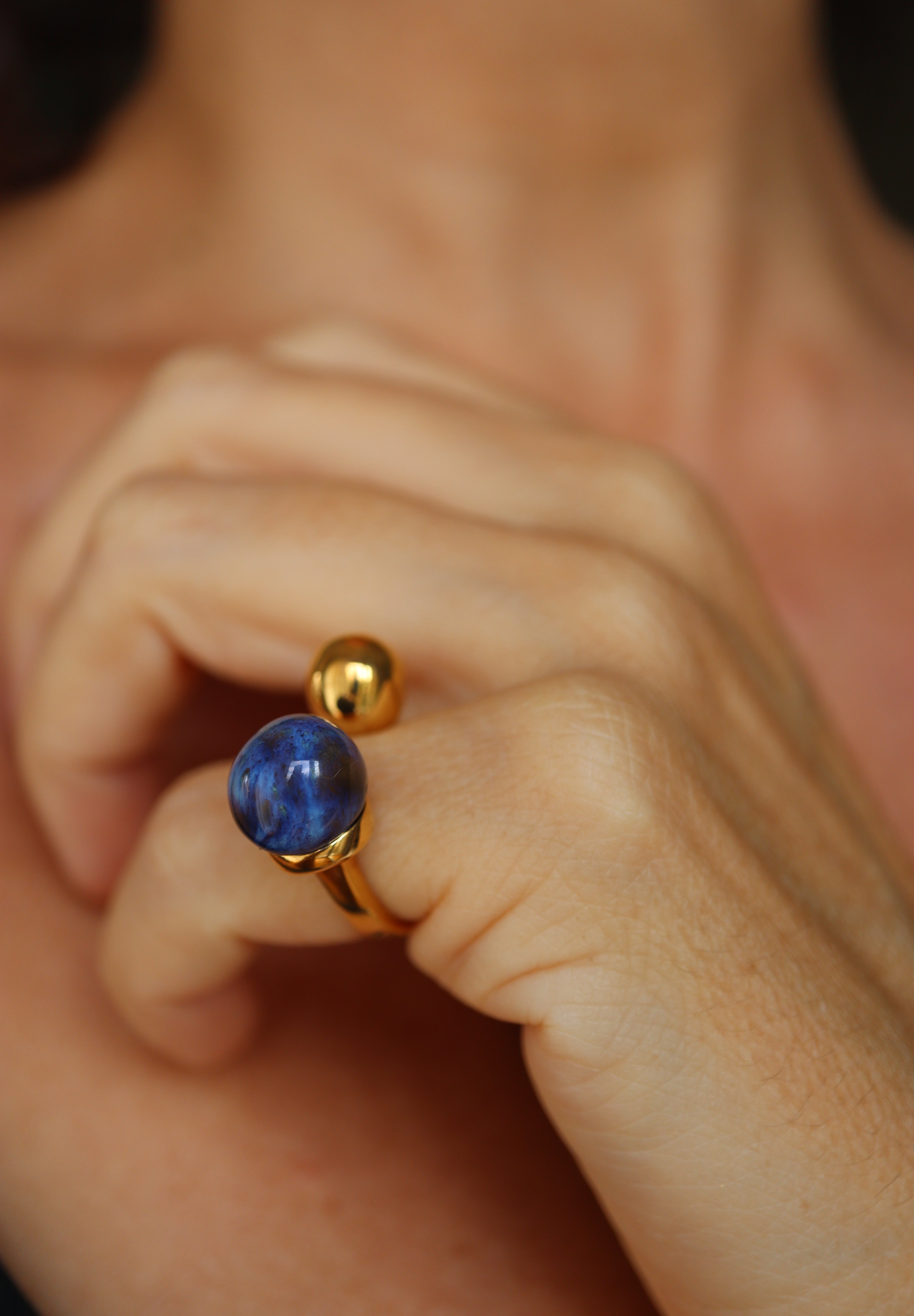 El işçiliği porselen taşlarla süslenmiş 22 ayar altın kaplama yüzük.