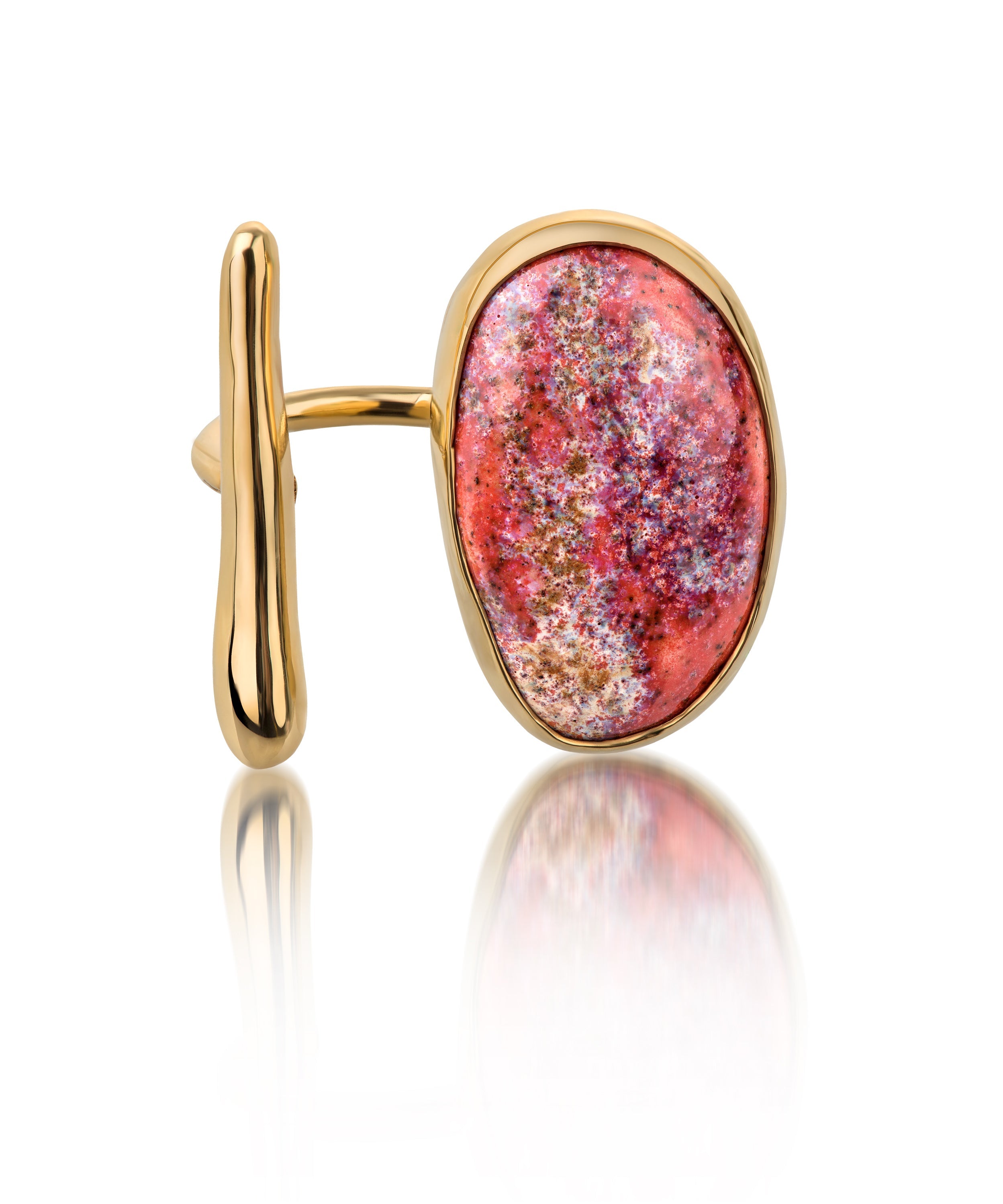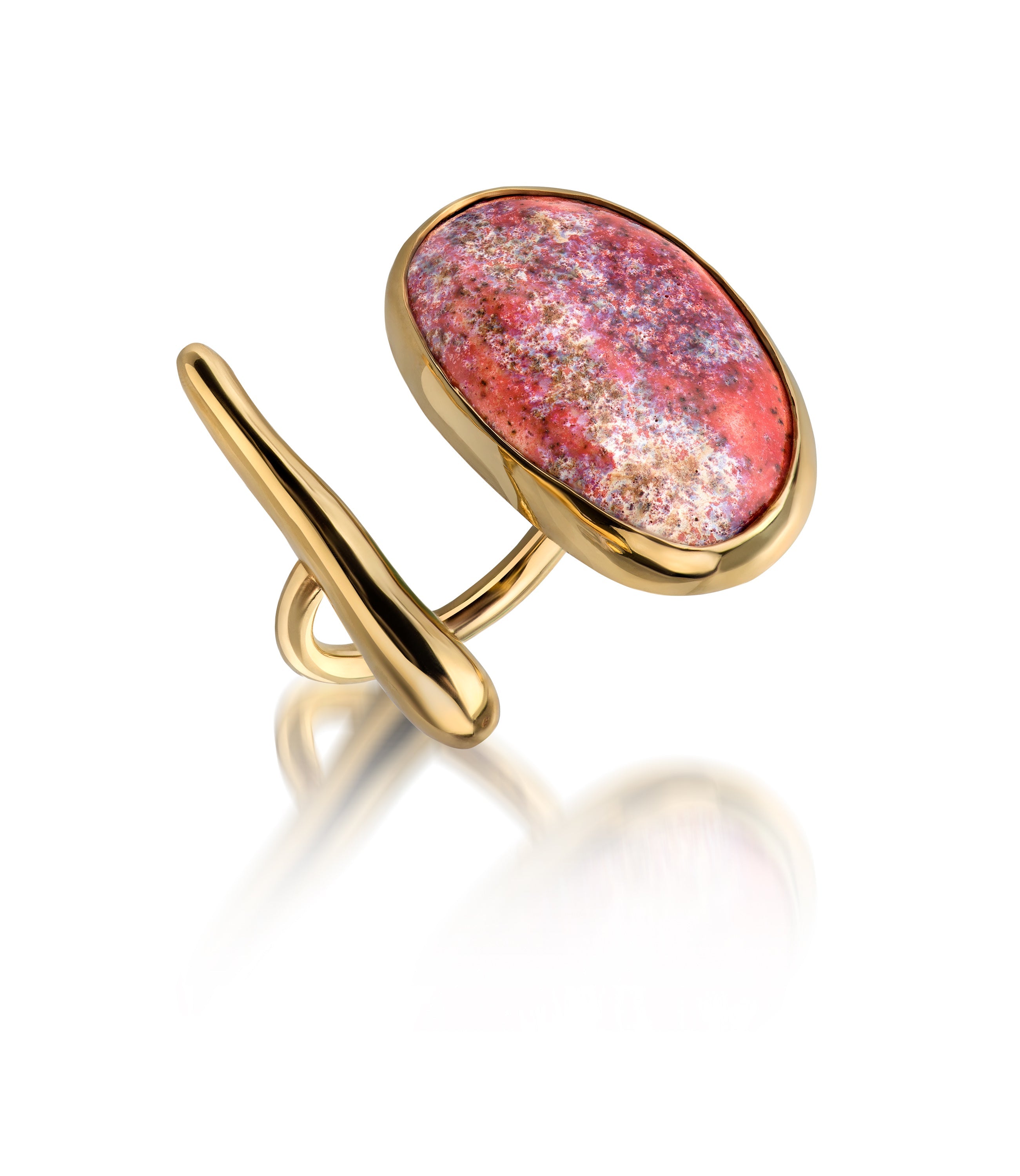 El işçiliği porselen taşlarla süslenmiş 22 ayar altın kaplama yüzük.