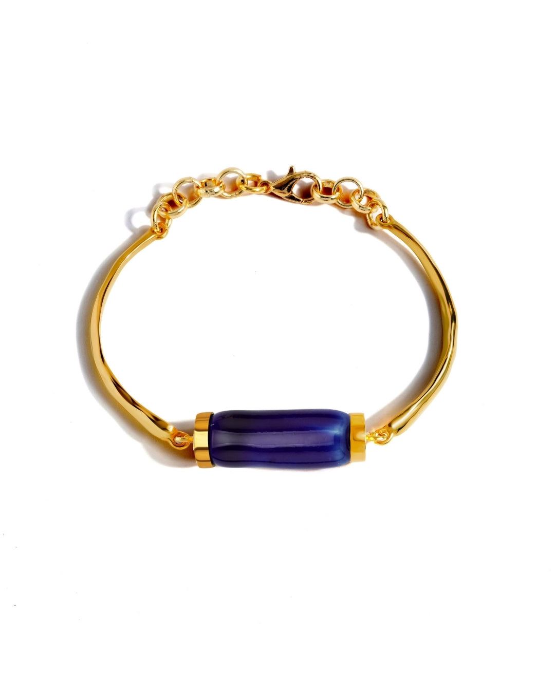 El işçiliği porselen taşlarla süslenmiş 22 ayar altın kaplama manşet.