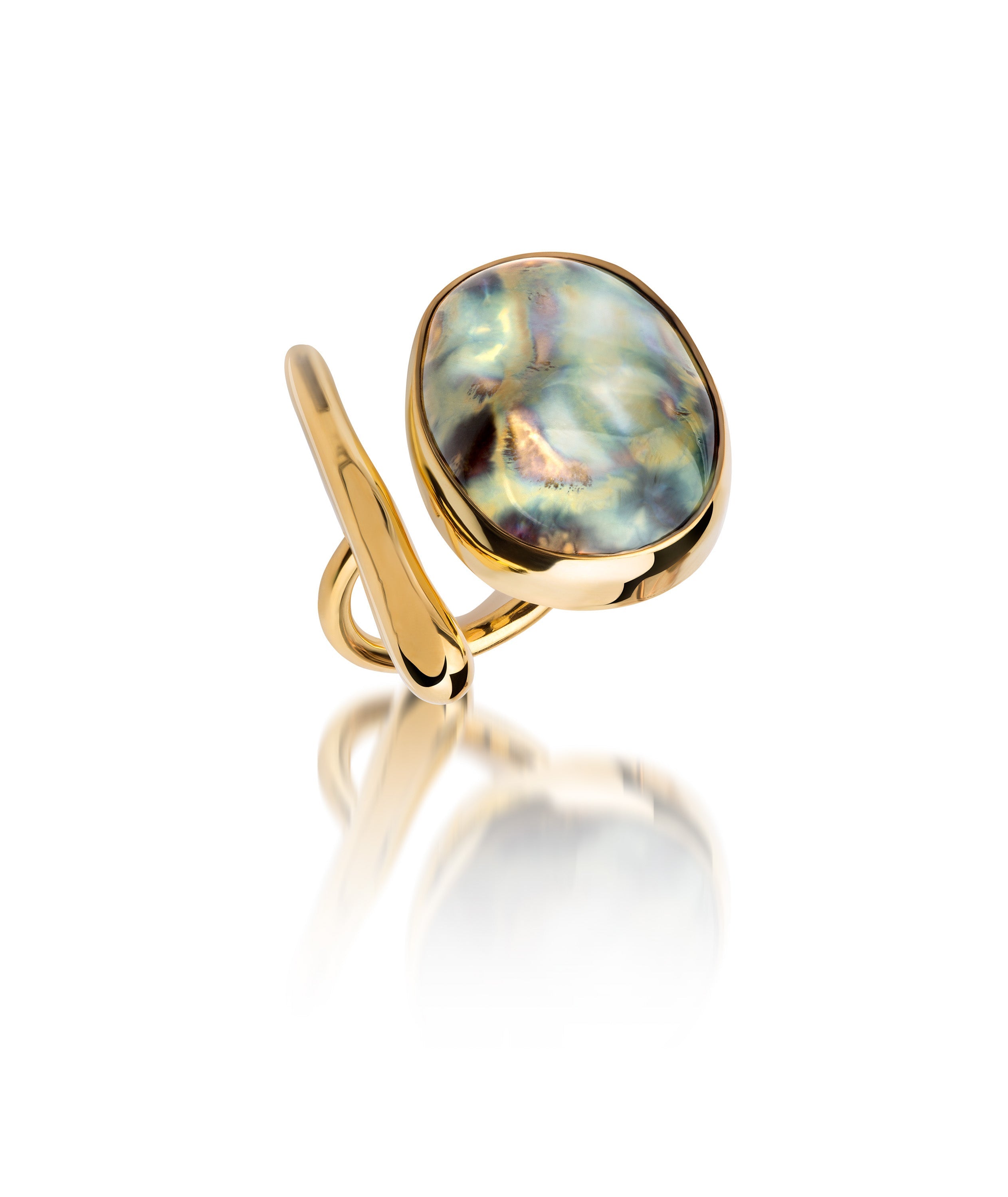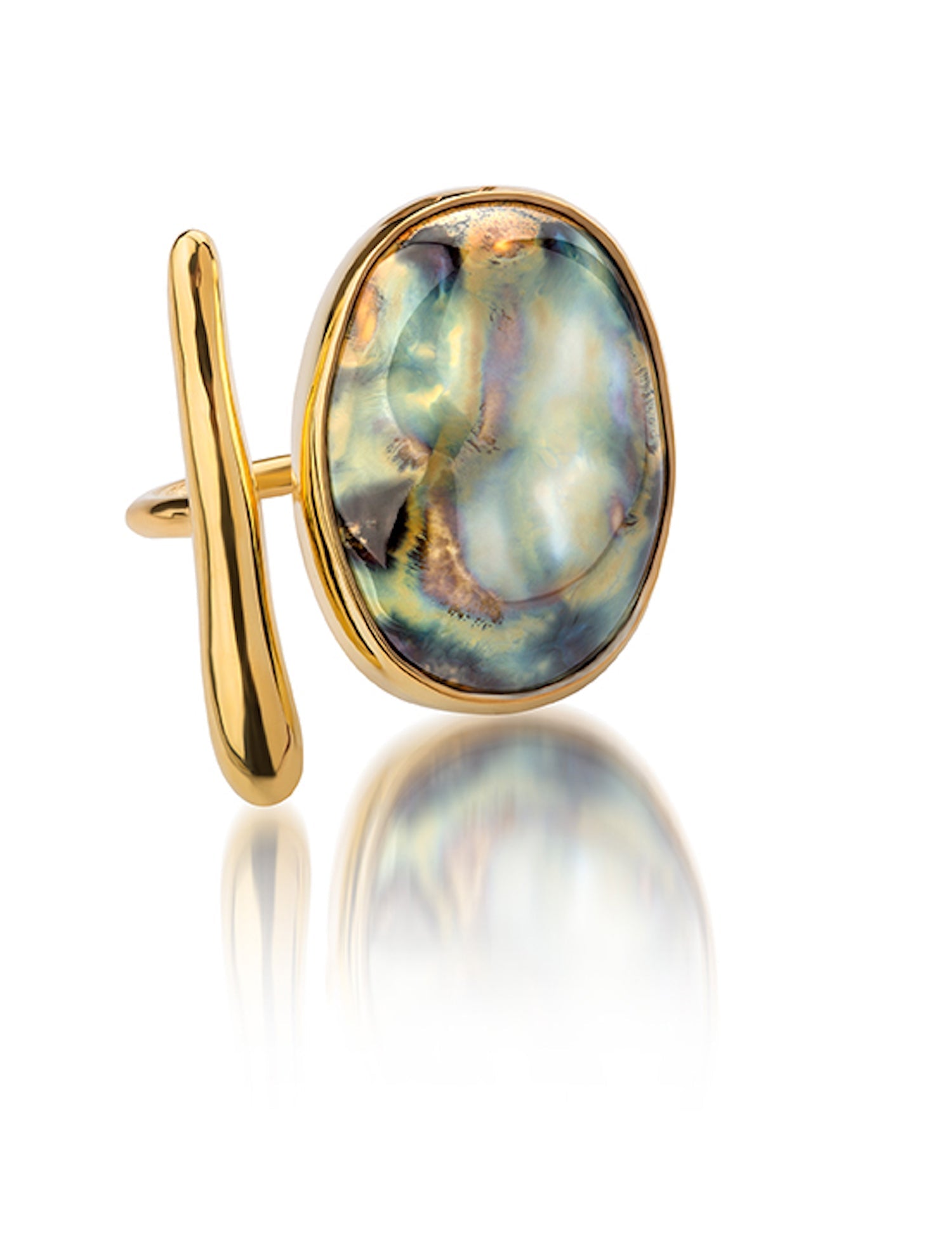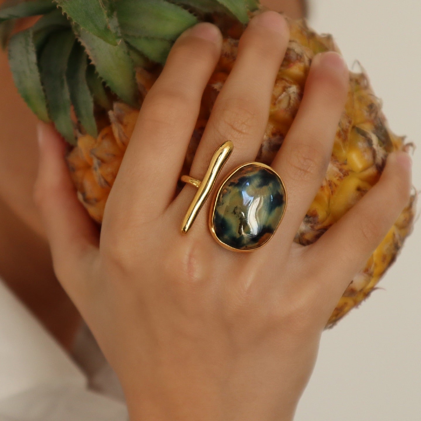 El işçiliği porselen taşlarla süslenmiş 22 ayar altın kaplama yüzük.