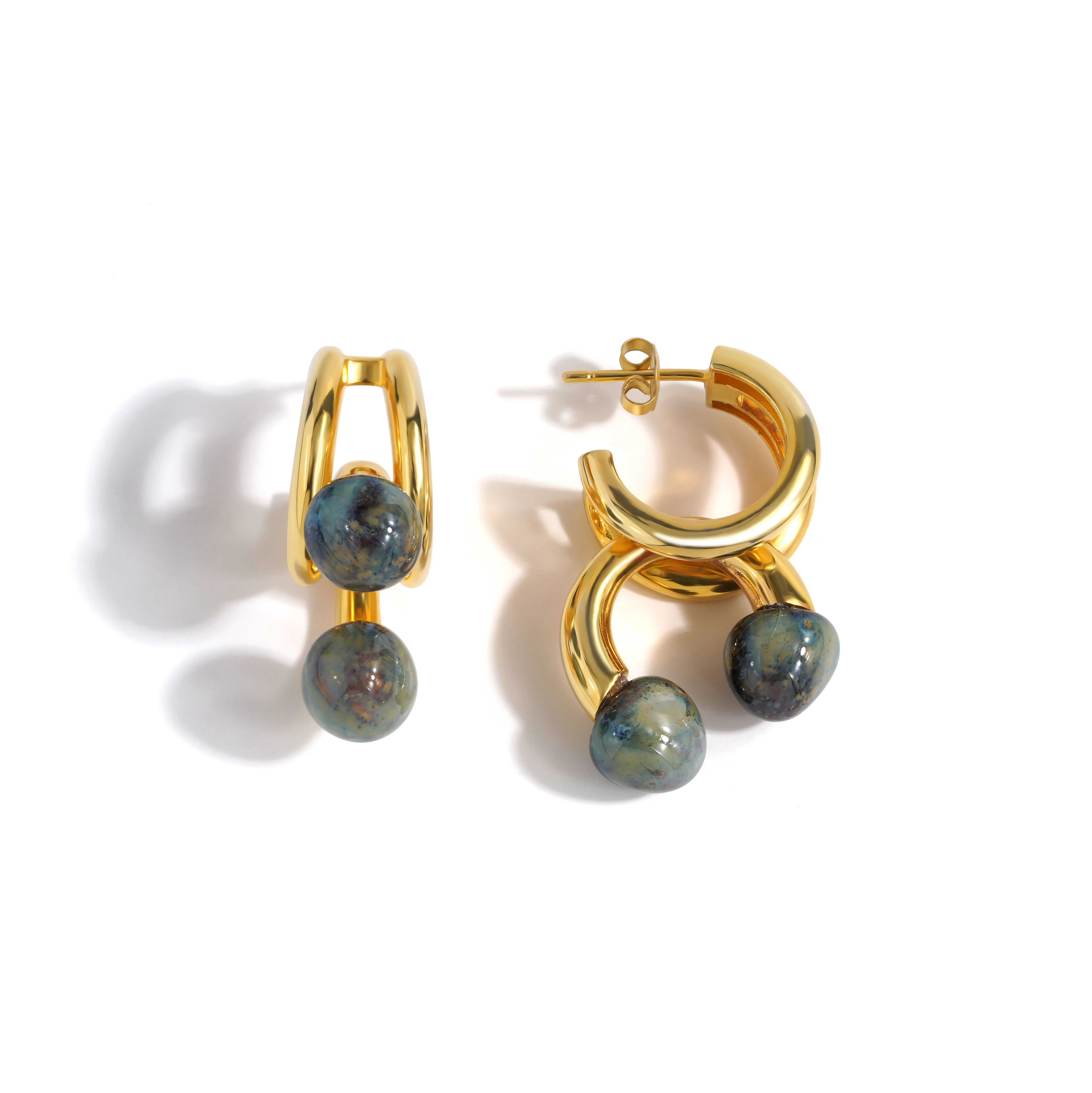 El yapımı porselen damlalarla süslenmiş 22 ayar altın kaplama küpeler